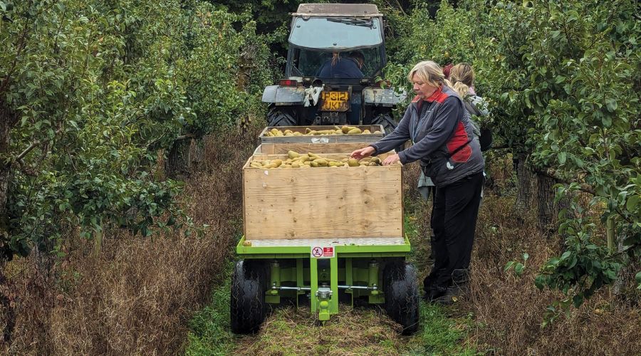 With the exceptionally dry weather in spring and summer 2025 resulting in a bumper harvest for many orchards, Alistair says their yields were higher than usual but it wasn’t their best year by a long way, and varied considerably between varieties. Younger trees, particularly Conference, did not do very well and strangely an orchard planted in 1947 hardly produced anything, which was a surprise as it should be well rooted.