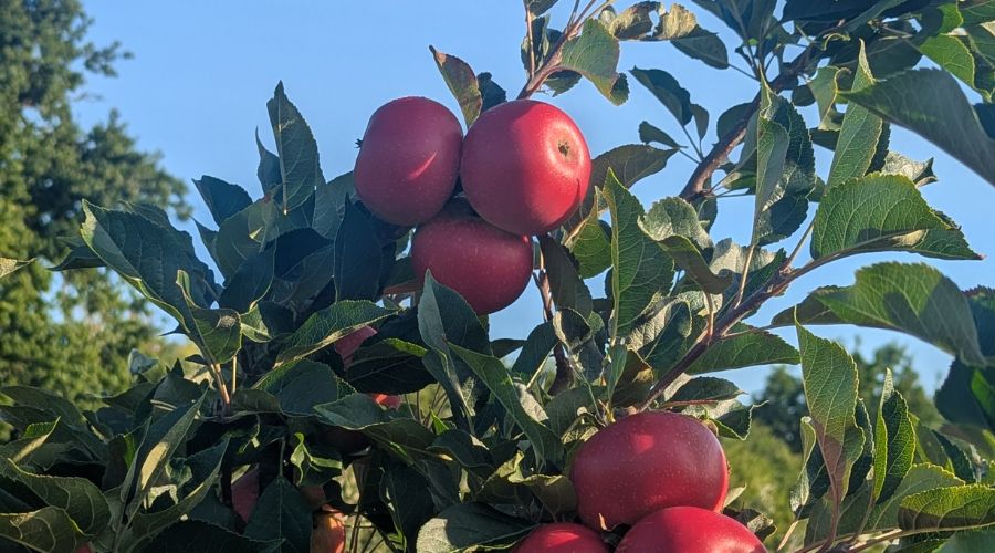 Varieties grown: Pears: Comice, Concorde and Conference. Apples: Cox and Cabaret