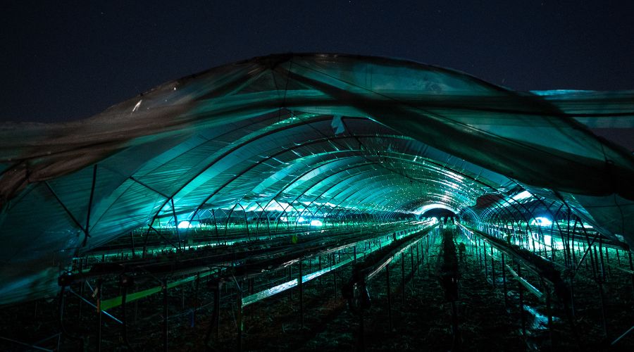 When the sun goes down, these robots deliver targeted ultraviolet-C (UVC) light treatment to the berry plants. The UVC light disrupts the DNA of powdery mildew spores, effectively controlling the disease without the use of traditional fungicides, the Angus Soft Fruits team explained.